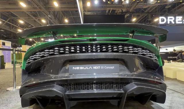 车尾提供了碳纤维大尾翼,尾灯造型很抢眼,使用了片状的发光片组成的横贯式结构,尾灯以下的部分都是碳纤维纹理,底部是赛车式的扰流设计。
